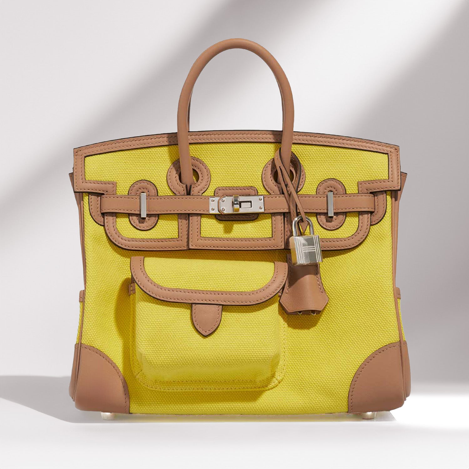 Hermès canvas, or “Toile,” is known for its lightweight structure and everyday durability, often paired with leather to balance practicality with luxury. Each variation brings a distinct character: Toile H is structured with a classic weave and a crisp finish, while Toile de Camp has a more rugged texture suited to casual use. Toile Chevron introduces a subtle diagonal grain, contrasting with the smoother, flatter look of Toile Jean. Whether tightly woven for refinement or left looser for a softer appearance, each canvas type reflects the understated versatility Hermès achieves even in its most relaxed materials.